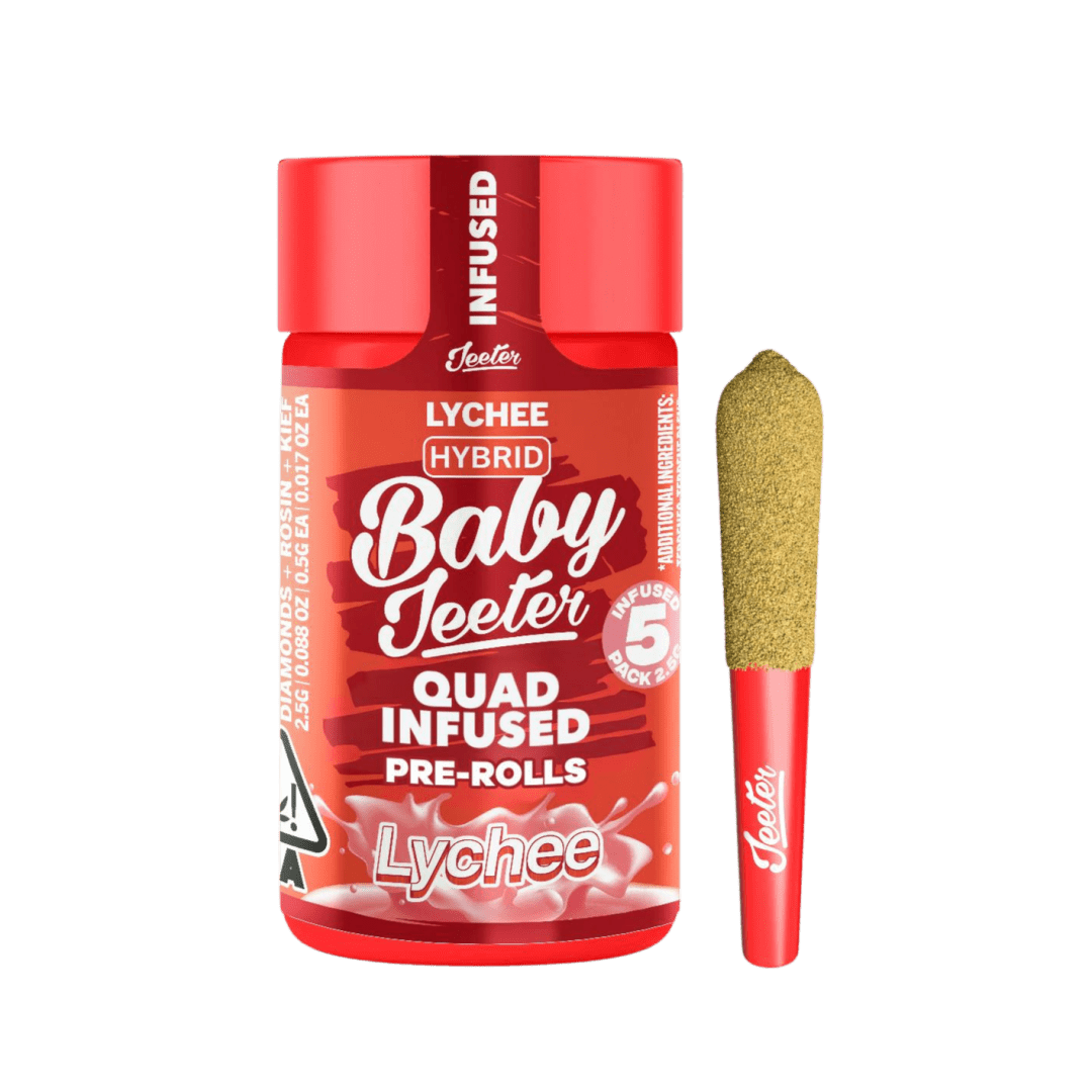 Jeeter’s Quad Infused Prerolls combine four layers working in sync for a maxed out infused experience. THCA diamonds add potency, rosin brings smooth, full spectrum depth, expertly crafted terpene profiles help shape the entourage effect while enhancing aroma, and a kief finish adds strength with a hand crafted touch. The result is a harder hitting experience with richer flavor that lasts longer.