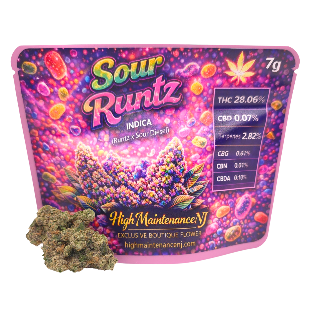 Sour Runtz is a heavy-hitting indica that fuses the candy-sweet profile of Runtz with the sharp, gassy edge of Sour Diesel. This unique cross delivers a bold flavor experience backed by deep, relaxing effects that hit both mind and body.