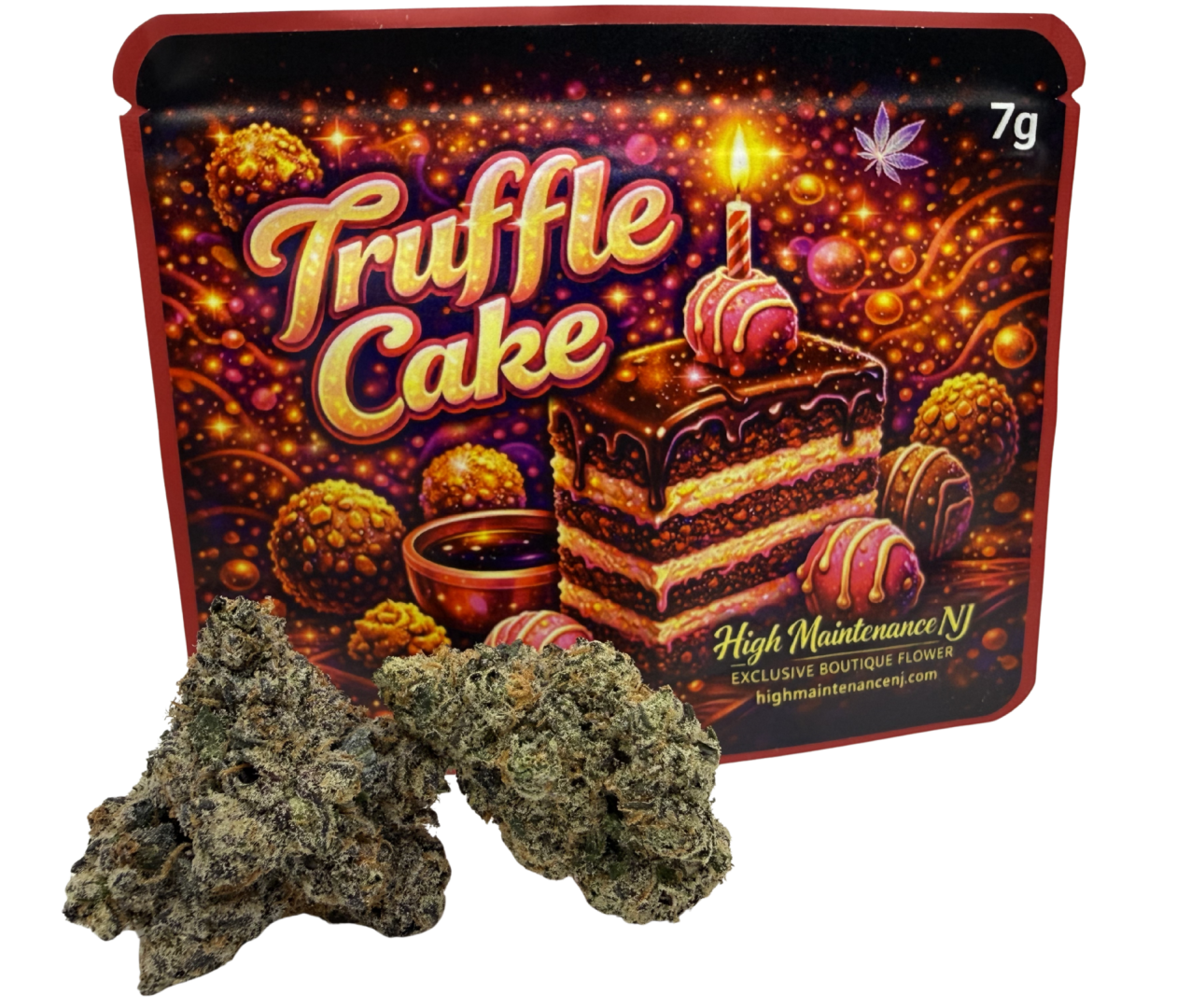 Truffle Cake is a rich, potent exotic grown in organic living soil, enhancing its deep terpene profile, smooth smoke, and full-bodied flavor. This premium indoor flower features a sweet dessert-like aroma blended with earthy truffle, creamy vanilla, and subtle gas, creating a luxurious and flavorful experience.